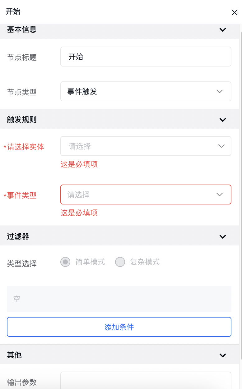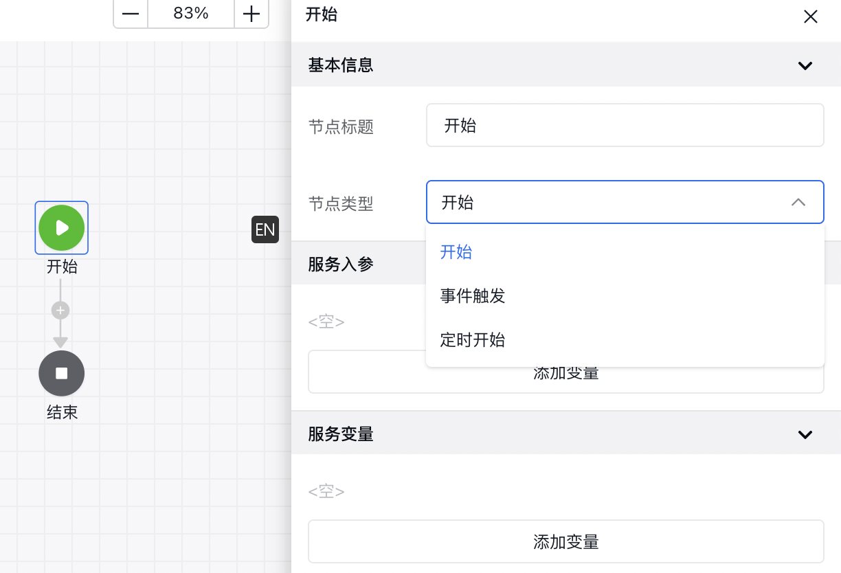 - 服务编排的触发是在服务编排的「开始节点」中配置的